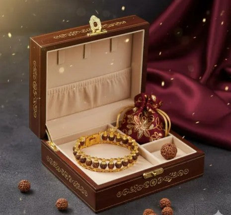 Shubh Rudraksha Energy Gold Bracelet – Blessed 5-Mukhi Beads for Peace & Prosperity